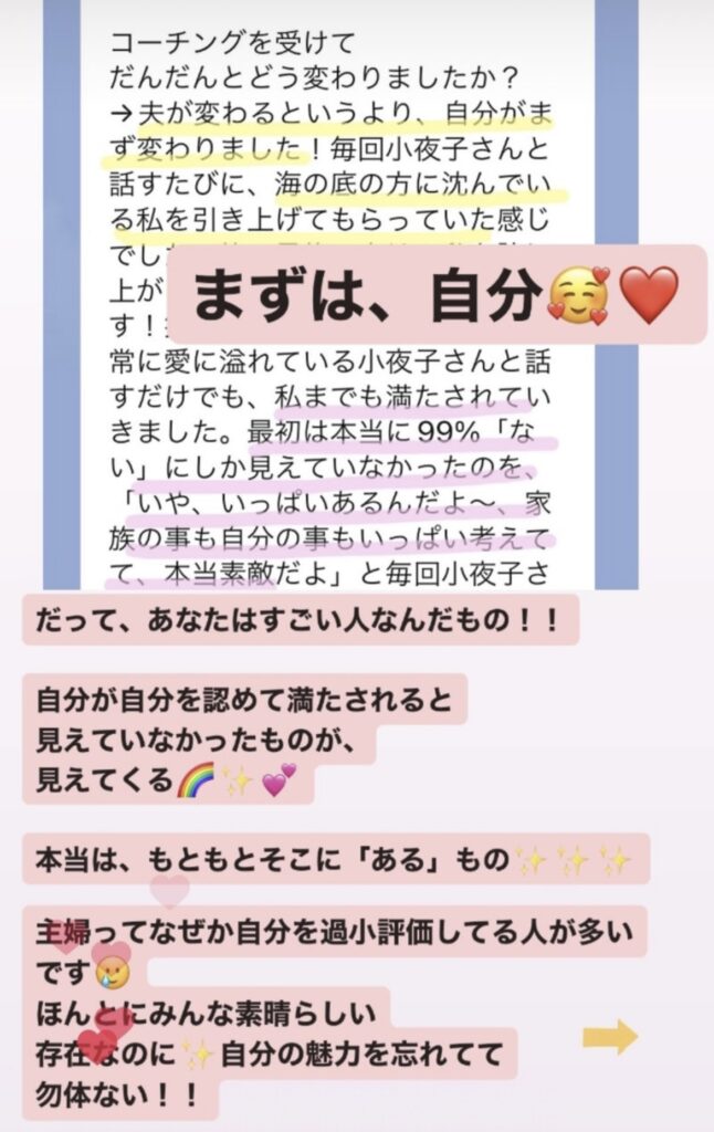 さよこさんのコーチングを通して、夫の違う側面も見えてきて、夫の感情が変化。