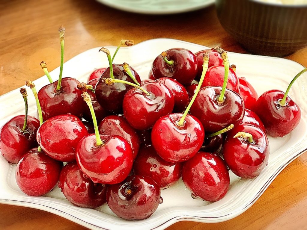 デザートのアメリカンチェリー、ひょいと摘む手、これはお姉ちゃんだな♡