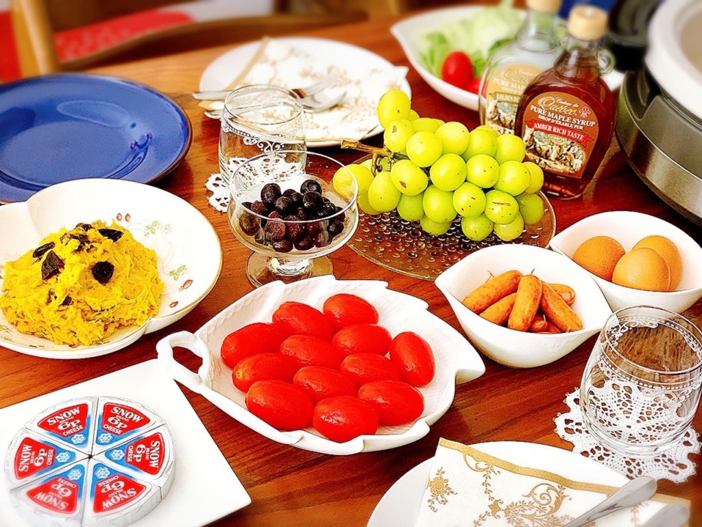 「いただきまーす!」と、最初に手を伸ばすのは、シャインマスカット。