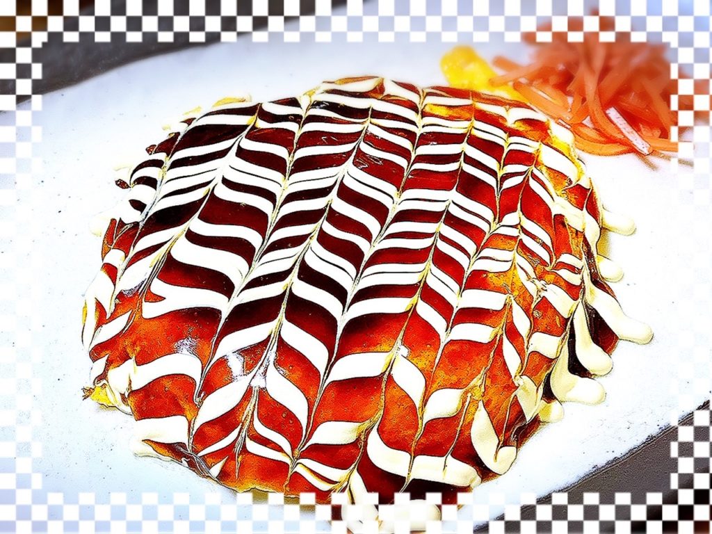 とっぷりかけたオタフクソースにマヨネーズで綺麗に模様をつける、これがお楽しみ♡