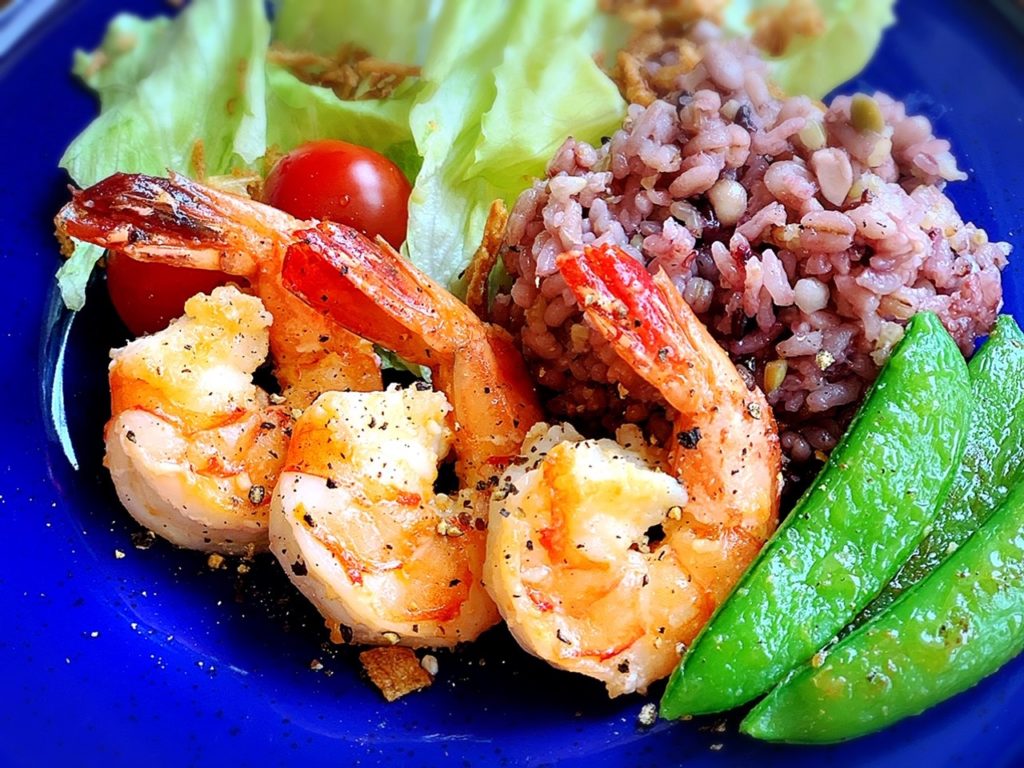 プリップリの海老さん。仕上げに黒胡椒を挽いて、フライドオニオンを散らせば、うんうん、ハワイのガーリックシュリンプですぞ。