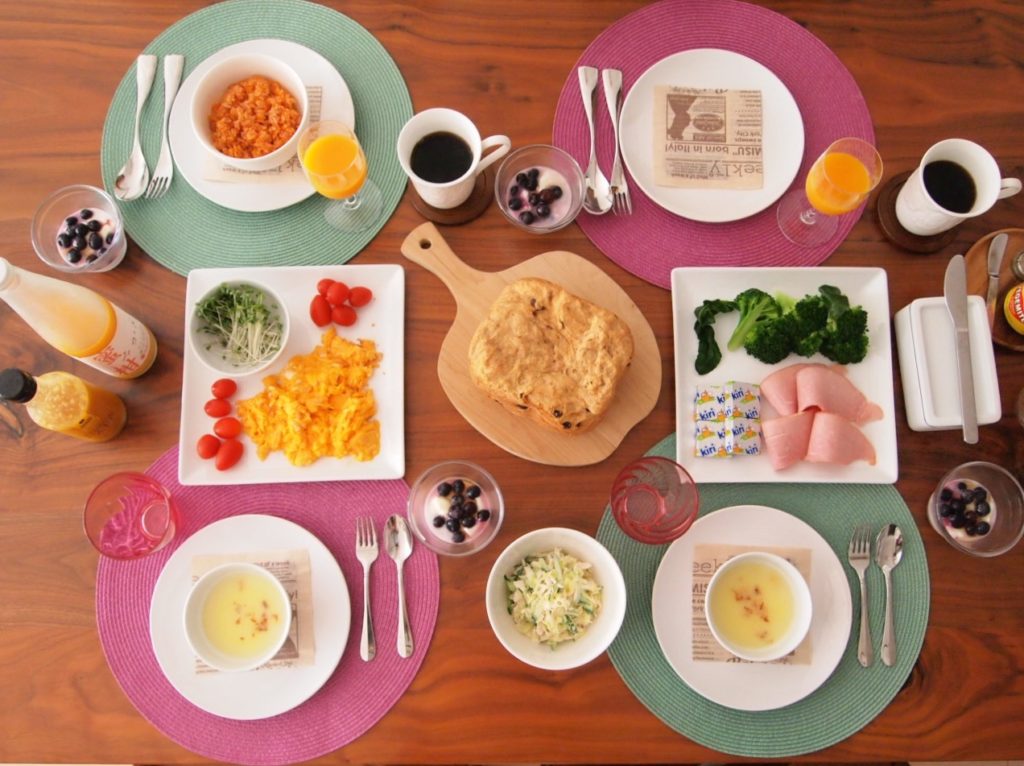 バター、ベジマイト、ケチャップ、マヨネーズ、にんじんドレッシング、コーンスープ、ヨーグルト ブルーベリー&はちみつがけ、ストレート蜜柑ジュース、コーヒー、牛乳